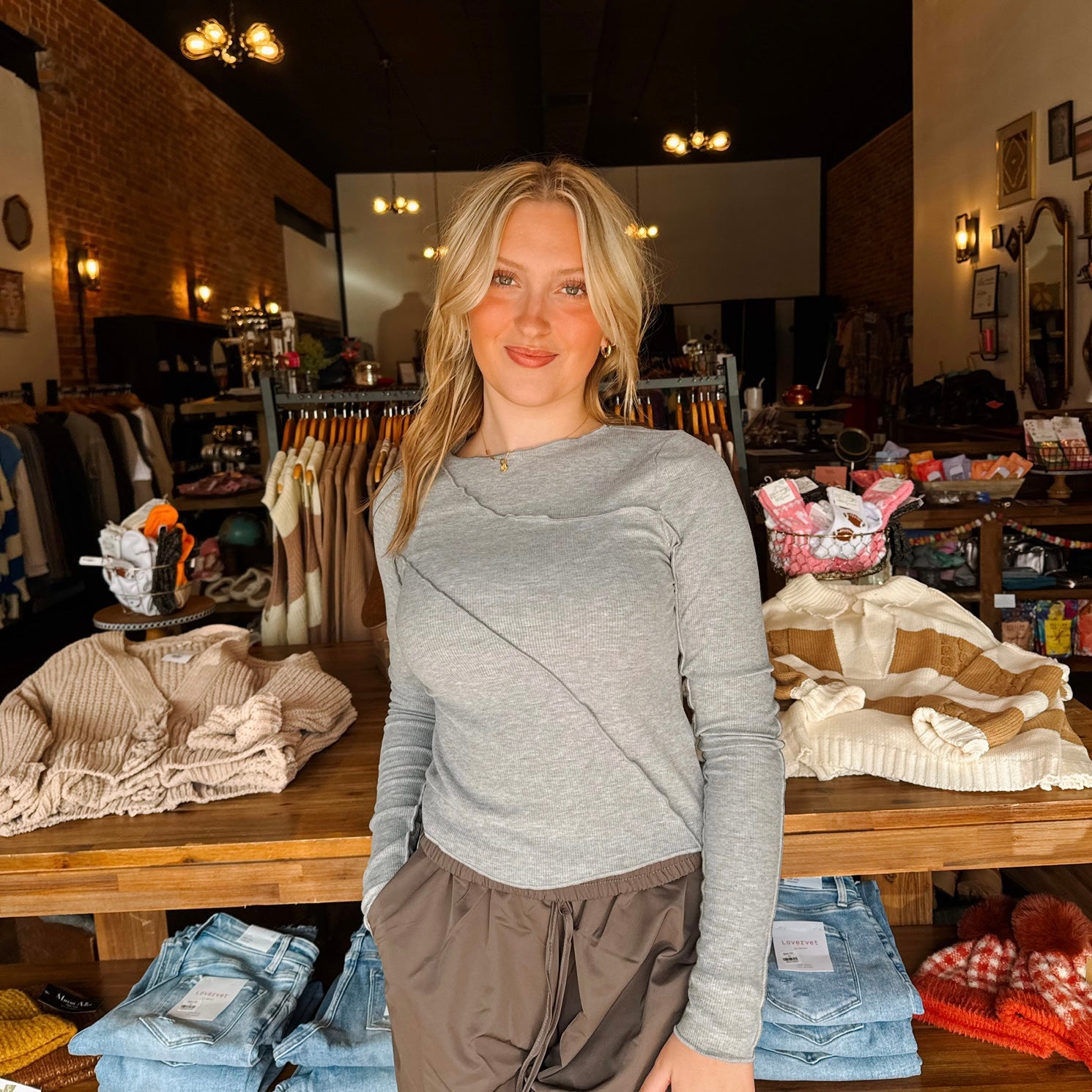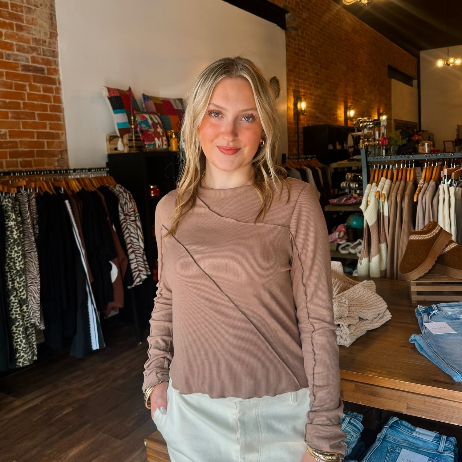 Asymmetrical Raw Edge Knit Long Sleeve Top