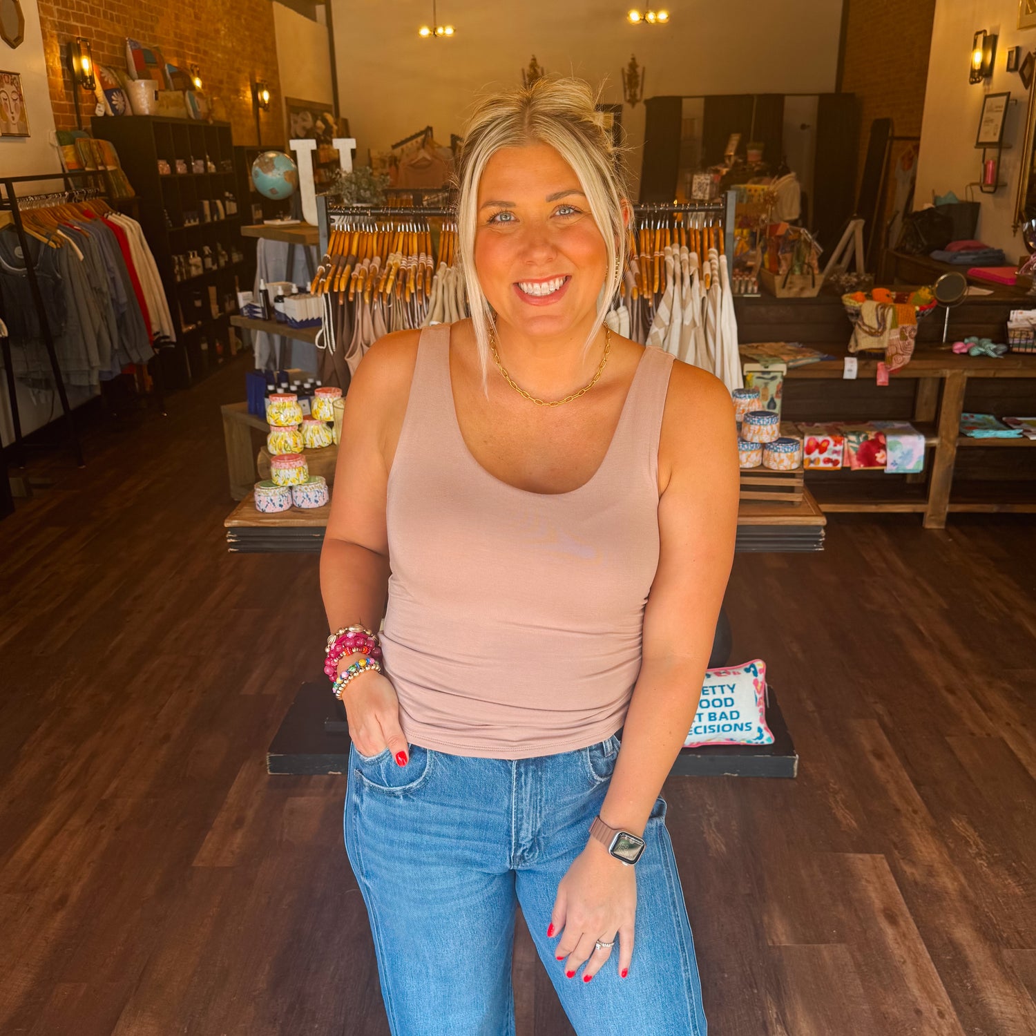 Basic scoop neck tank. Double lined. Fits TTS. Buttery soft & a flattering fit!