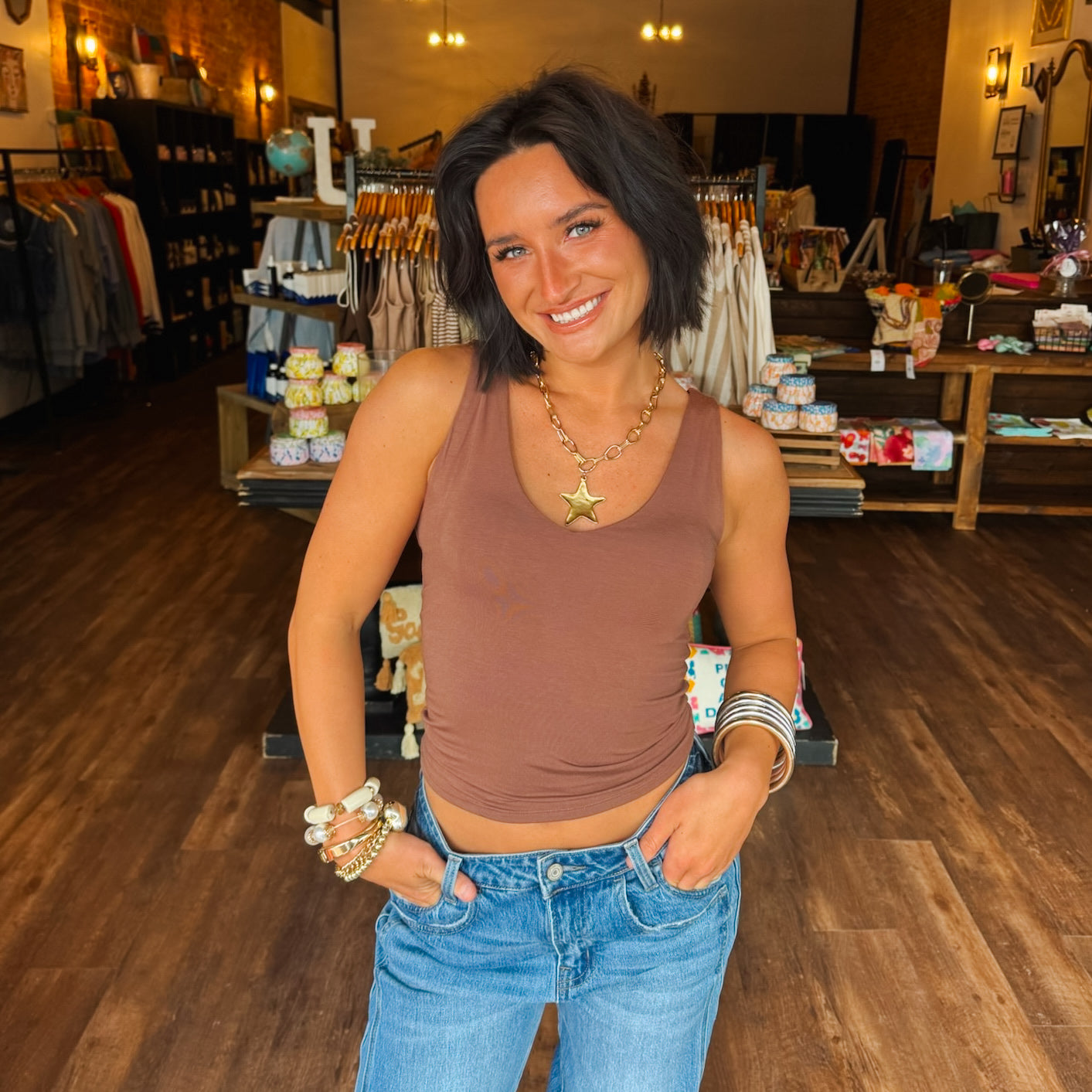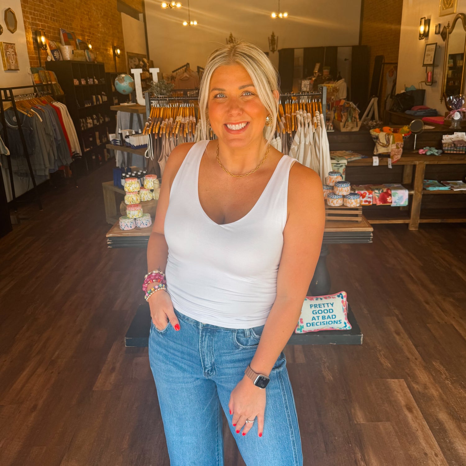 Basic v-neck tank. Double lined. Fits TTS. Buttery soft & a flattering fit!