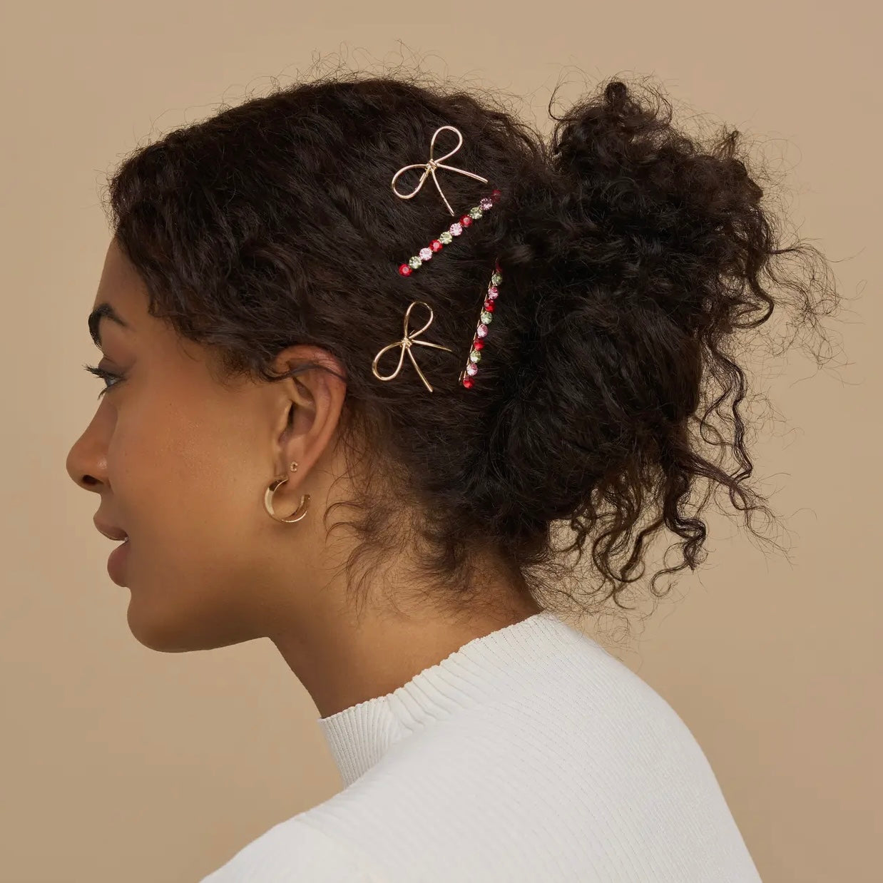 Kitsch Holiday Gemstone and Bow Bobby Pin 4pc Set