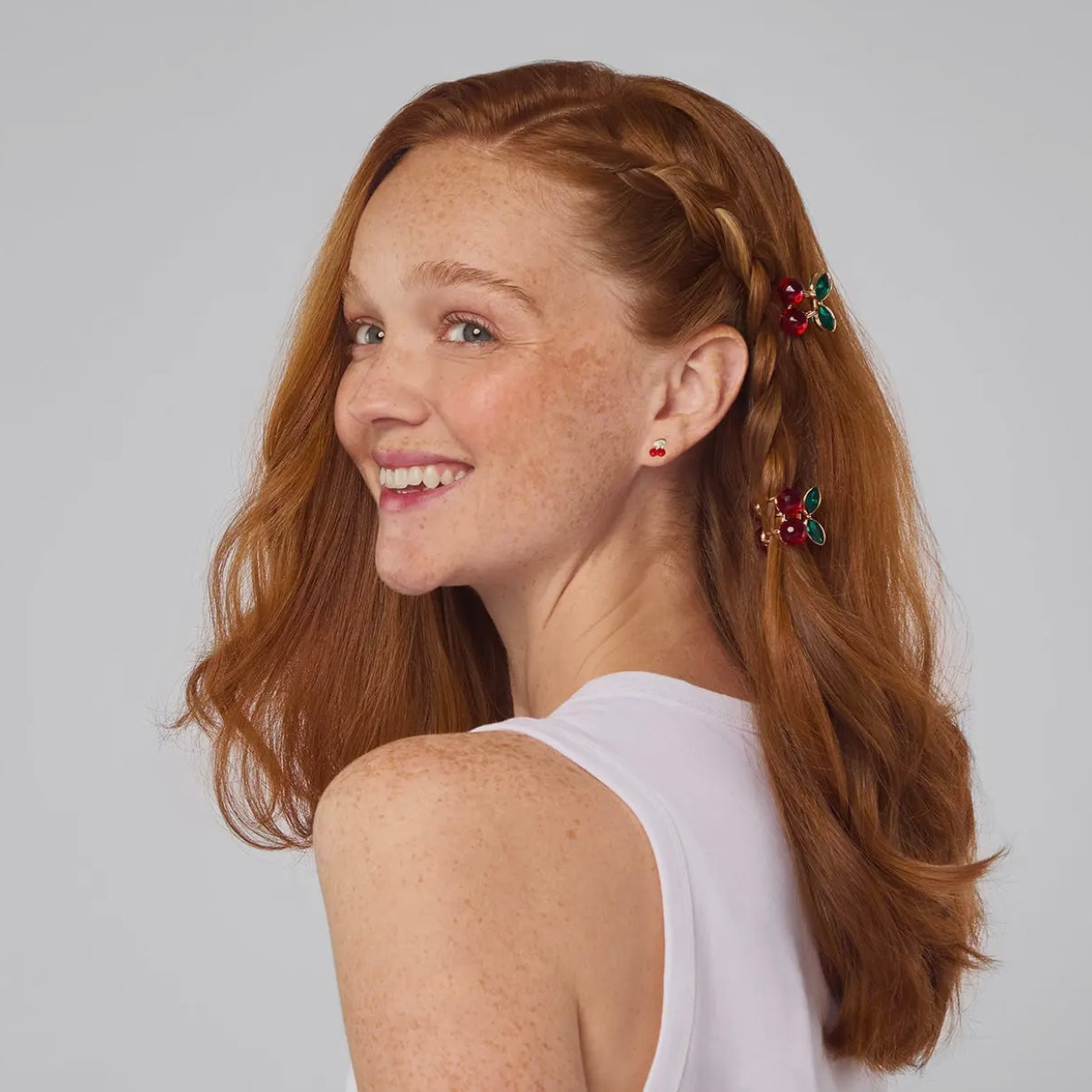 Mini Rhinestone Claw Clips 2pc Set - Cherry