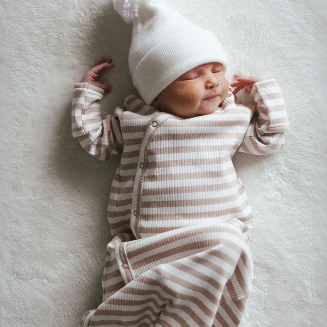 On the Organic Gown, now you have ultimate convenience and comfort, too. Newborns can grow with this gown, and parents love how easy diaper changes are.