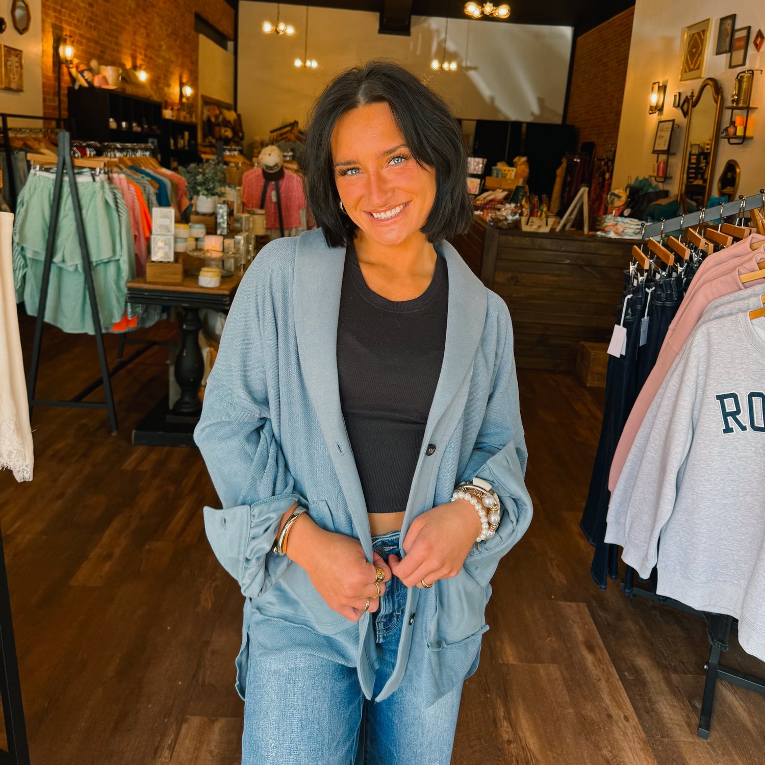 Lightweight French terry raw edge vintage side slit oversized blazer shacket